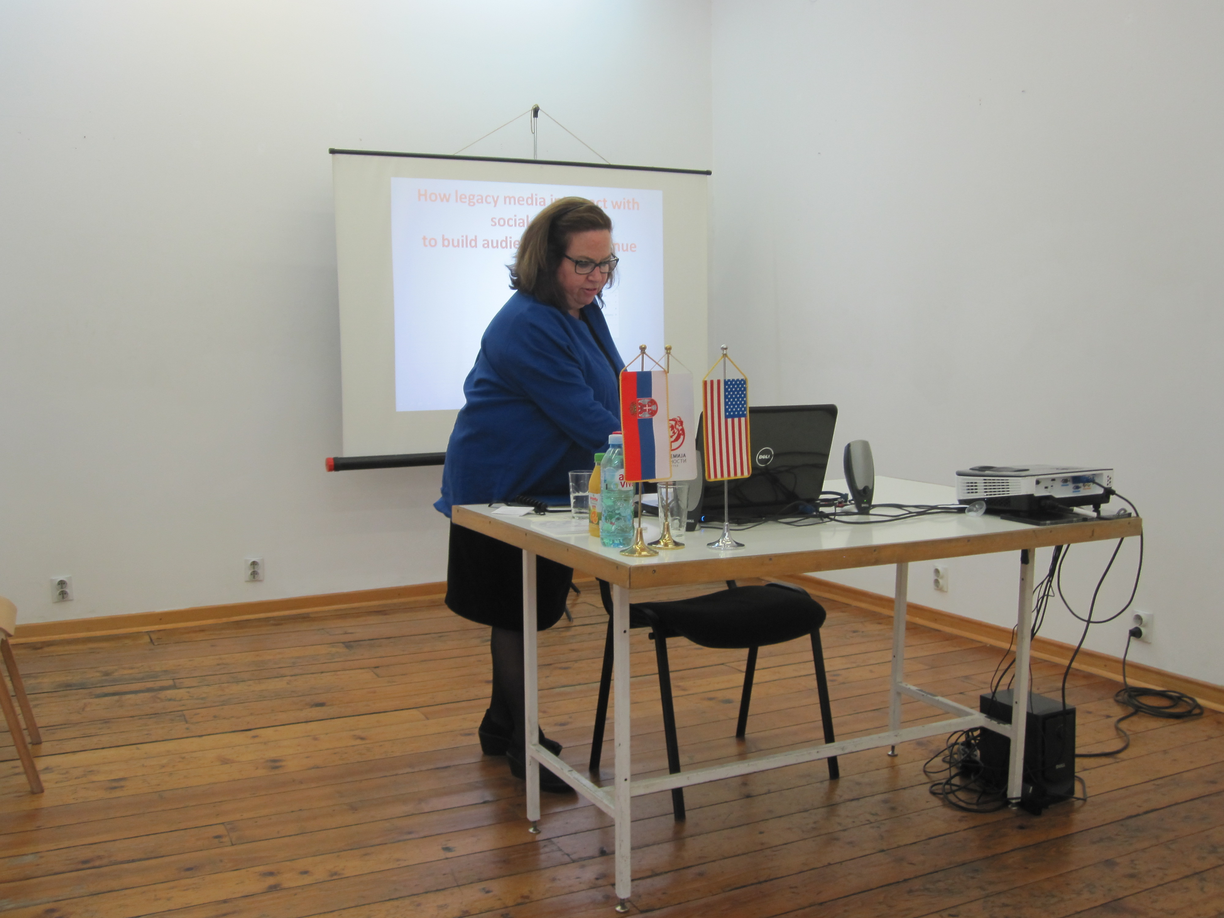 MIŠEL FOSTER – MEDIJSKI KONSULTANT IZ VAŠINGTONA ODRŽALA PREDAVANJE NA AKADEMIJI UMETNOSTI U BEOGRADU, 22. JUNA 2015., U BALKANSKOJ 21
