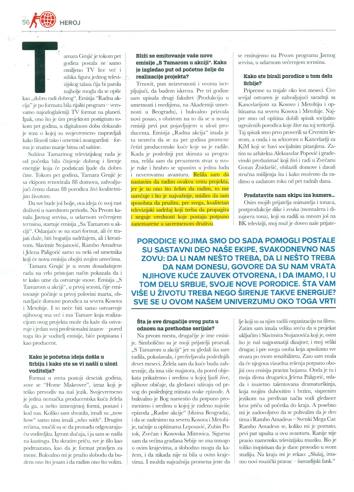 “Od 11. marta, petkom u 21 sat na Prvom programu RTS-a, gledajte emisiju “S Tamarom u akciji”. Obećavamo vam TV serijal sa pregršt nezaboravnih, životnih priča koje nikoga neće ostaviti ravnodušnim!”